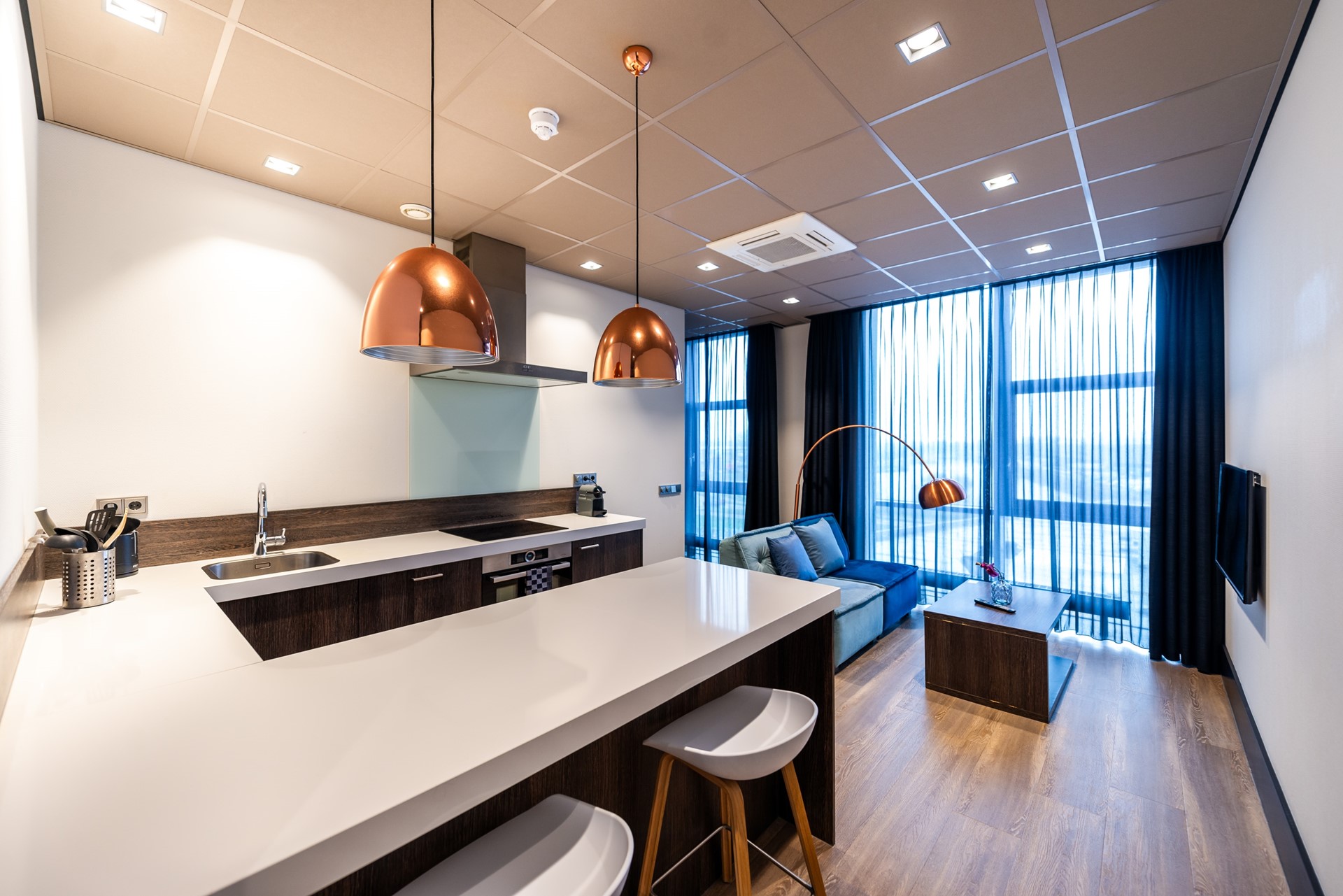 Wij bieden 8 volledig ingerichte short stay appartementen in ‘De poort van Veghel’ aan. Ze zijn allemaal modern gemeubileerd en gestoffeerd. Ook zijn ze voorzien van airconditioning, een televisie, vaatwasser en magnetron. Keukengerei, beddengoed en handdoeken zijn aanwezig. De huurprijs is inclusief gas, water, elektra, televisie- en internetabonnement. Eens per maand wordt er schoongemaakt. Tevens kunt u voor de deur gratis parkeren, is er een lift en kunt u gebruik maken van een gedeelde wasruimte.