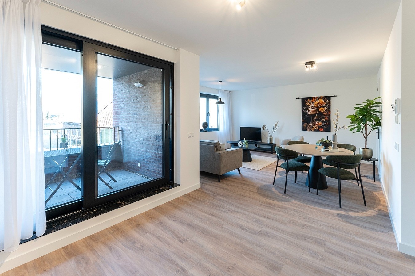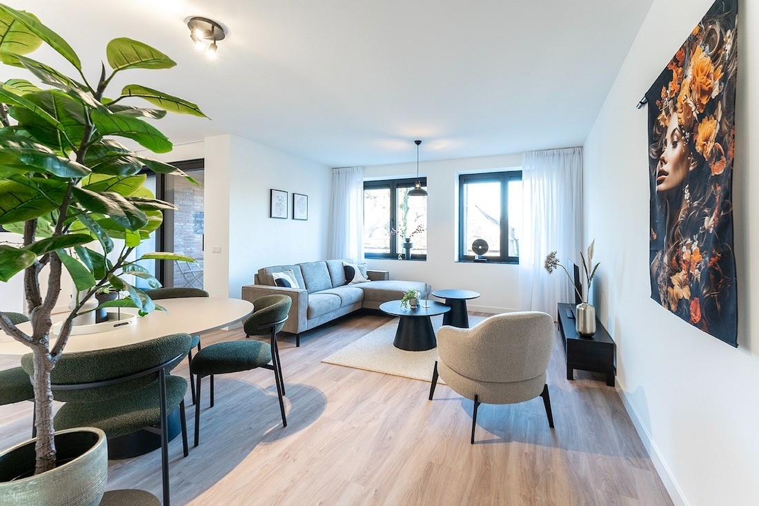 This new two-bedroom apartment is located about 15 minutes by bike from the city center of Tilburg. Upon entering through the entrance hall, you will find a spacious living room filled with natural light from large windows.