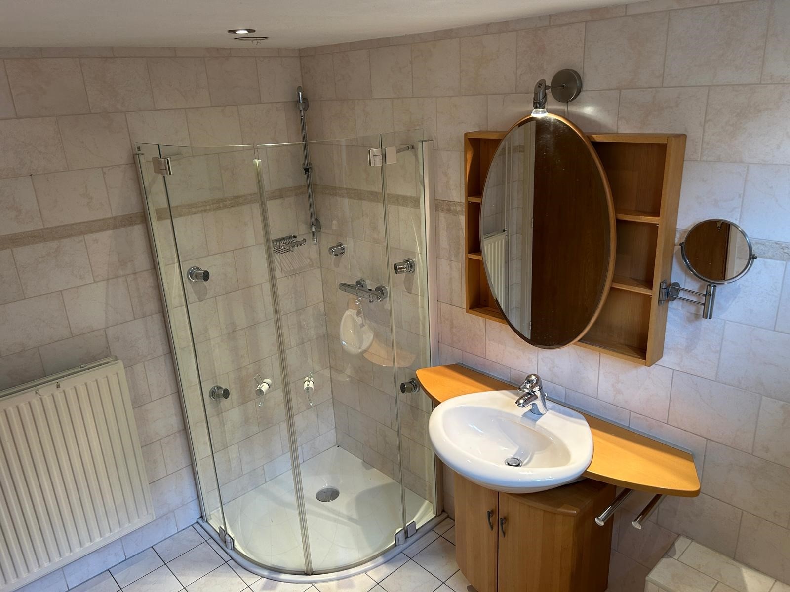 Bathroom: the bathroom is located on the ground floor and is equipped with a shower, bathtub, and sink.