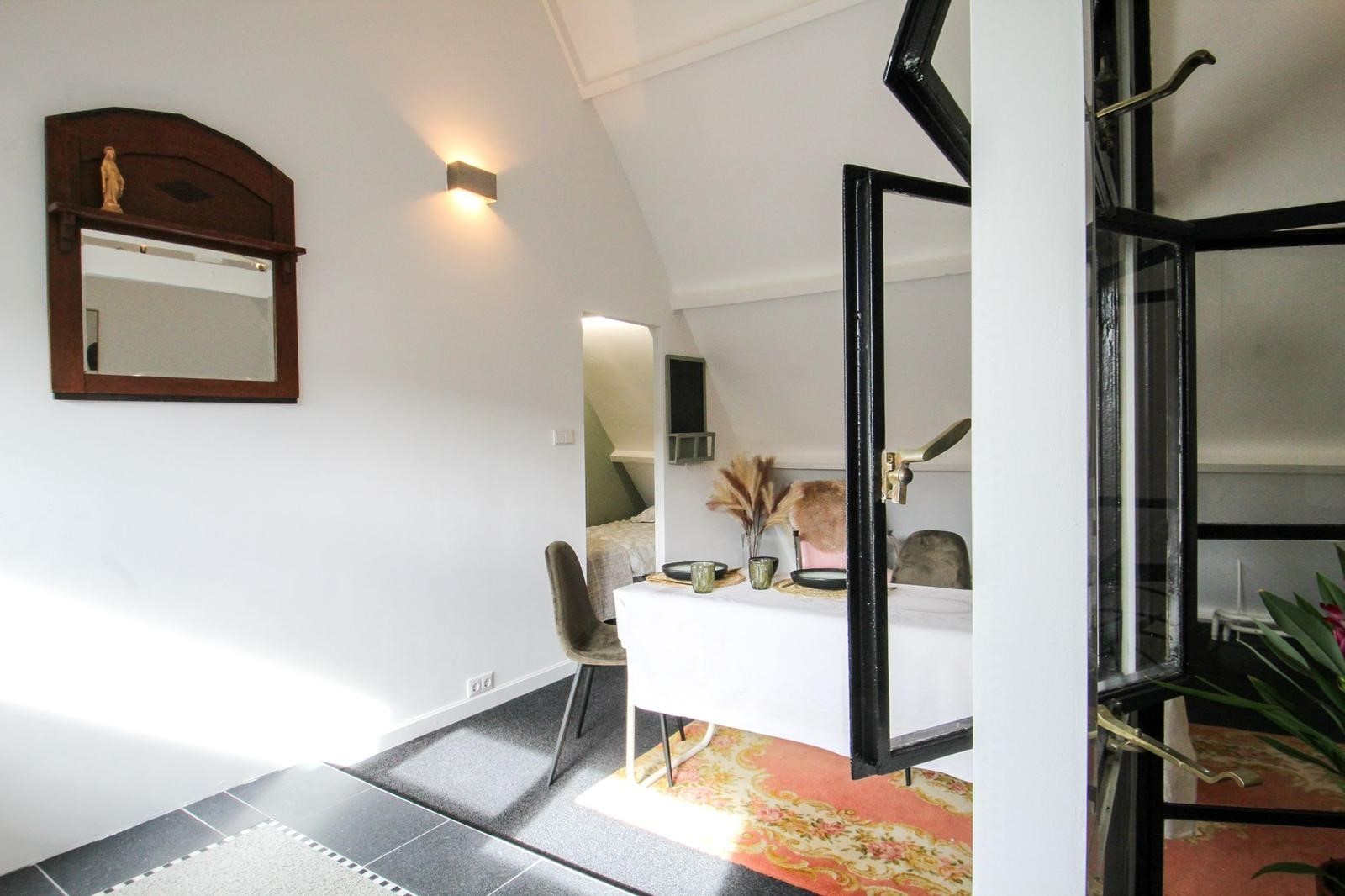 This comfortable and stylish 40m² studio features a terrace and a fully equipped kitchen. It includes a private bathroom and toilet. The studio is located on the second floor, with access via the kitchen on the ground floor. While the studio does not have a lockable door. The owner resides on the ground and first floor.